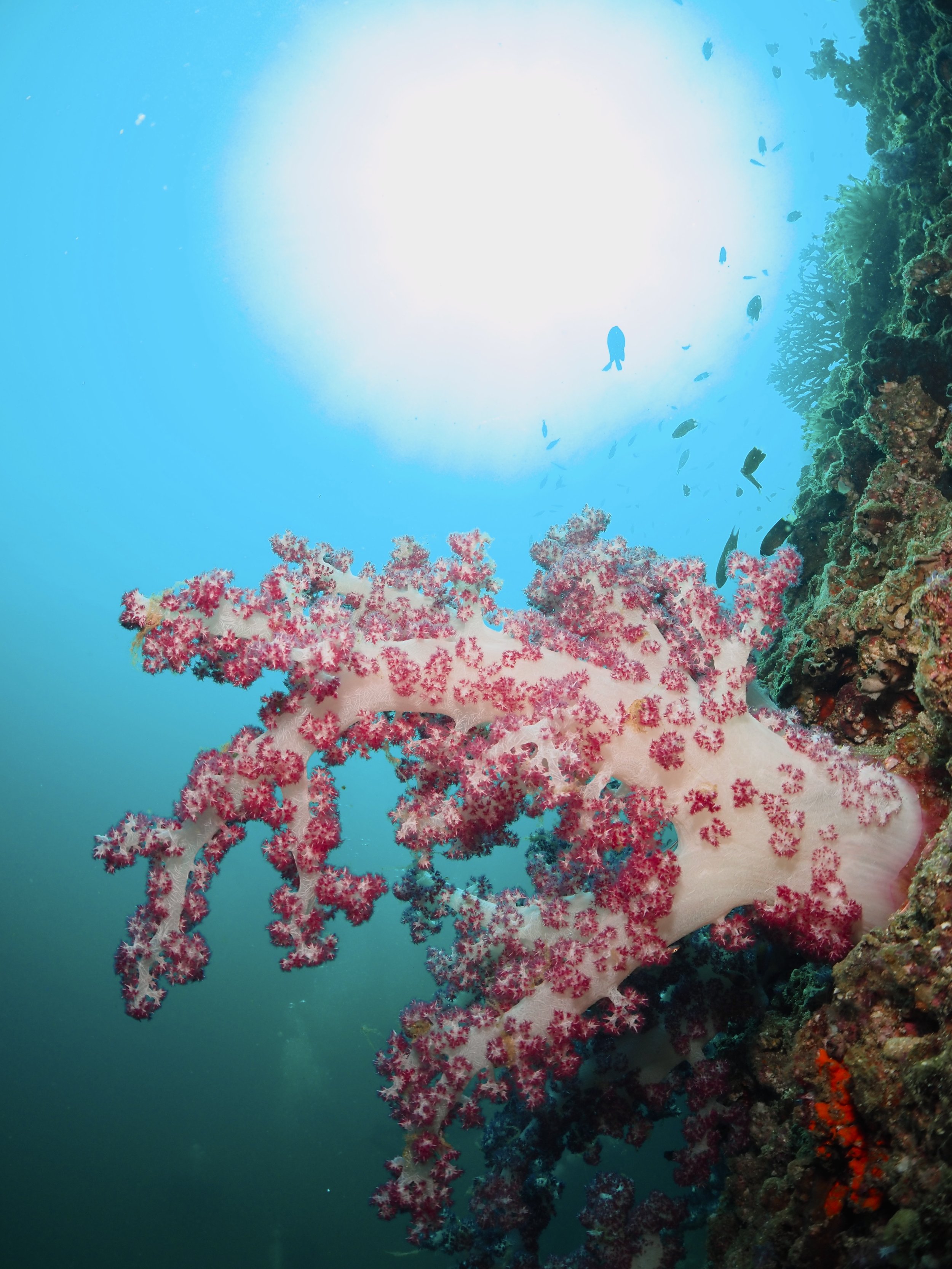 I dived in September & used a 3mm wetsuit with no hood which was sufficient for the top 15m. Below the thermocline I would often feel blasts of cold water, which was a little chilly in the 3mm, but most of the dive was spent above 15m. If you visit later in the winter, water temps can drop to 21-24 C, so a thicker (5mm or 7mm) wetsuit and hood is recommended. In the peak of the summer (July-August), the temps can reach 28-30C.