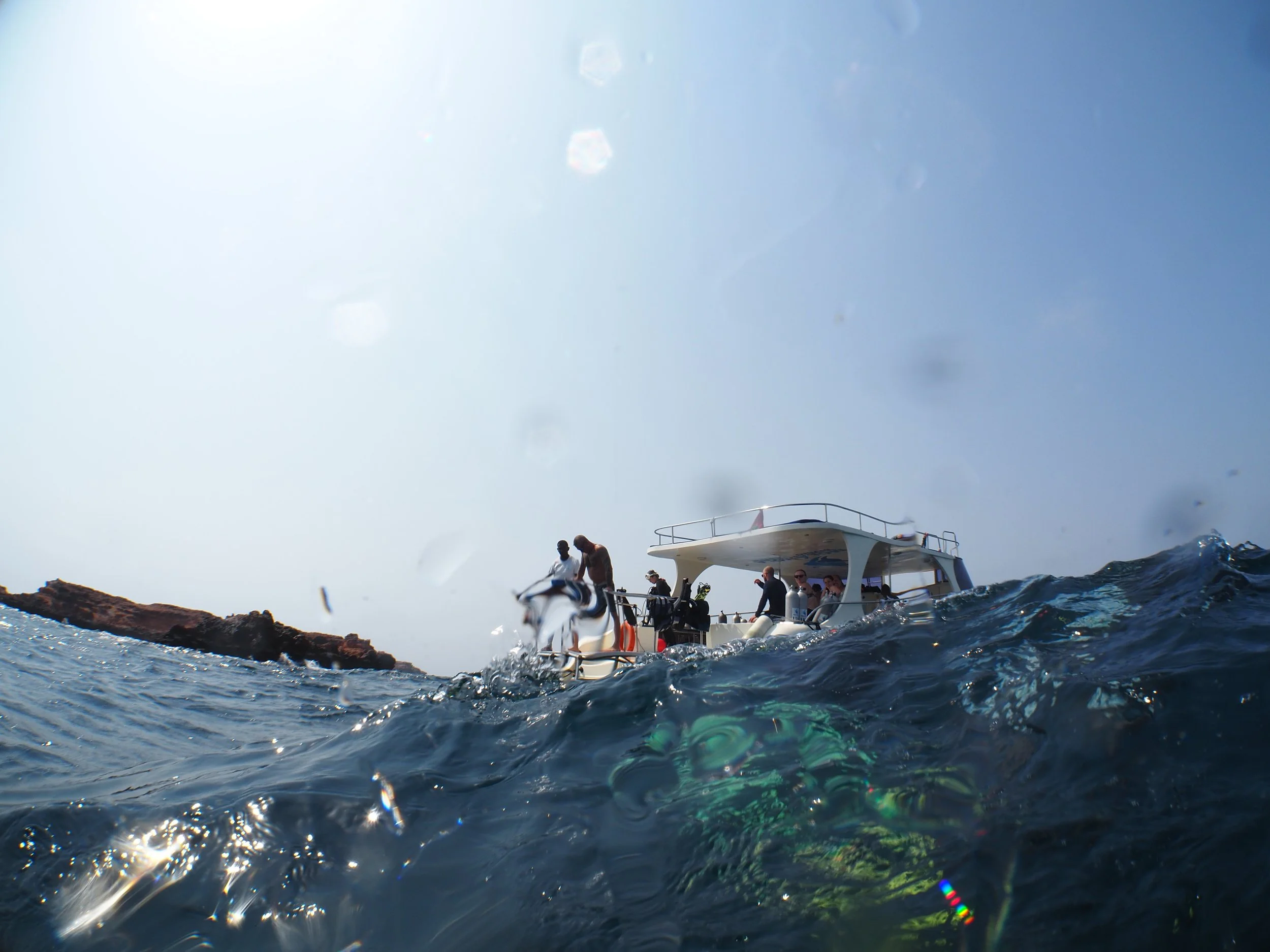 After leaving Al Mouj, the boat has to cross an open stretch of ocean. This is often when you can be lucky enough to spot whale sharks during whale shark season (July - late September)! If a whale shark is spotted, the boat crew will stop the boat and let the guests slip in to snorkel with the whale shark. It is fairly rare to see the whale sharks whilst diving at the Islands. Unfortunately, on the 2 days that I was diving there was a fair amount of chop and swell which meant that it would be impossible to spot a whale shark. The swell also meant the boat ride was a little… bumpy. So if you suffer from sea sickness, be sure to take some tablets with you.